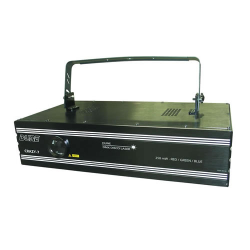 Laser 250mW Rojo-Verde-Azul (635 nm Rojo, 532 nm Verde, 473 nm Azul.) Gran velocidad de movimiento de la óptica que hace posible generar figuras en 3D. 128 dibujos pre-programados. 250 figuras pre-programadas. Movimiento horizontal y vertical. Protocolo DMX 512. Funciona al ritmo del sonido. Programas automáticos. Conexión por puerto paralelo para ILDA. Alimentación 220 V. Dimensiones 65 x 15 x 37 cm. Peso 17.6 Kg.