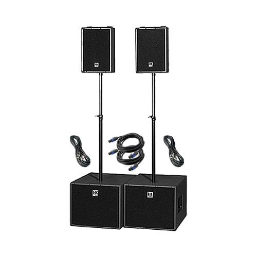 Equipo autoamplificado HK de 1.500W alto nivel de calidad y posibilidad de conectar un ordenador, una cabina de DJ o mesa de mezclas.
