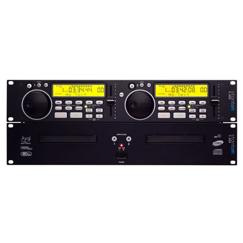 Reproductor CD dual profesional en formato rack 2U. Reproduce audio cd y MP3. Gran pantalla LCD con información de etiquetas ID3 (MP3).