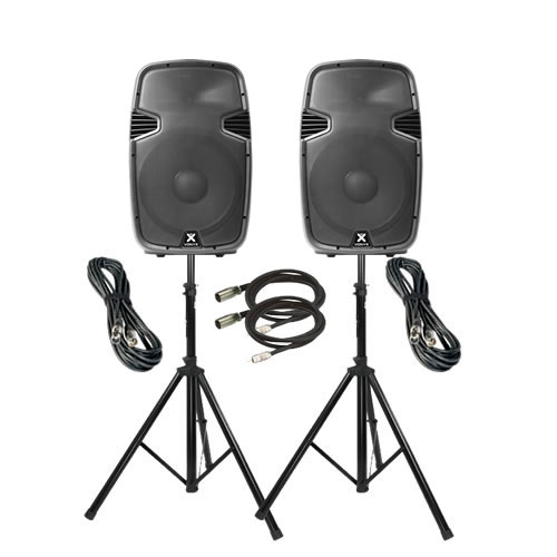 2 Cajas activas para medianas sonorizaciones en la que podamos conectar un ordenador, teléfono,  micrófono y mesa de mezclas para un máximo de 80/90 personas.